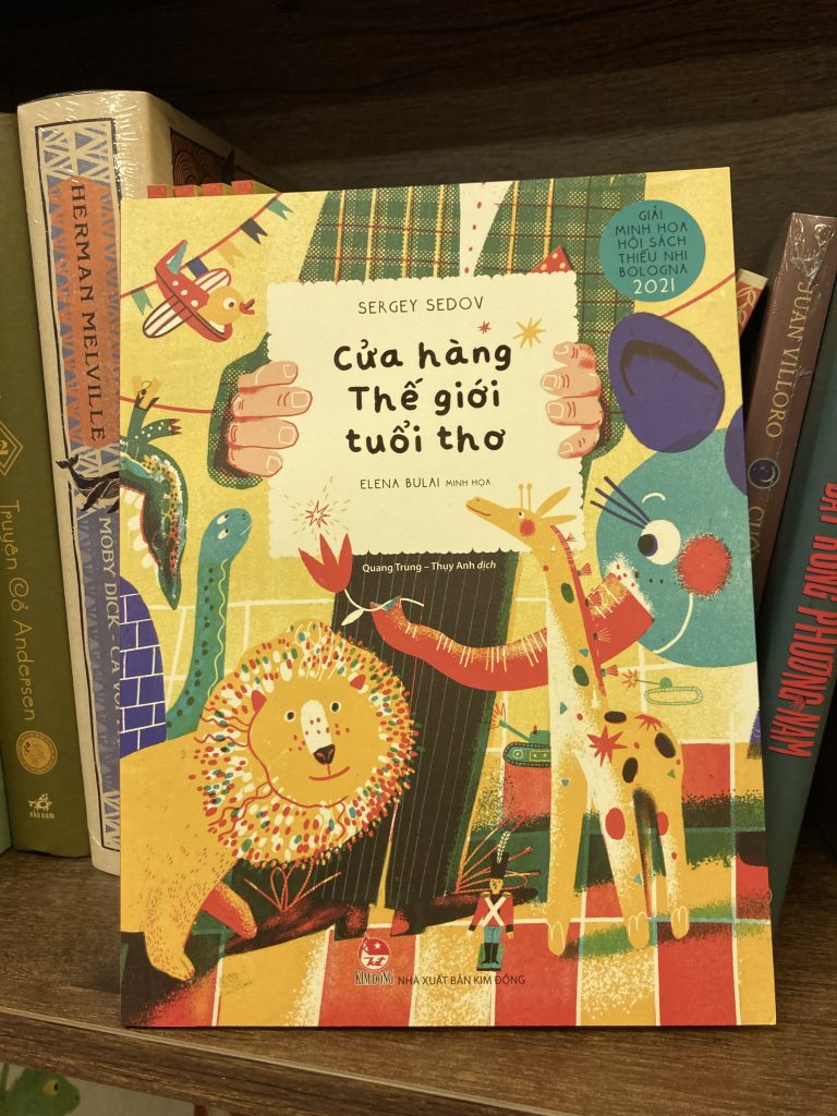 “Cửa hàng Thế giới tuổi thơ” là một đầu sách đáng yêu của tác giả Sergey Sedov, với minh họa tuyệt đẹp bởi Elena Bulai, do Nhà xuất bản Kim Đồng ấn hành. Chúng ta cũng không thể không nhắc đến công sức của hai dịch giả Quang Trung và Thụy Anh, những người đã mang đến cho độc giả Việt Nam một bản dịch đầy chất thơ và tinh tế, truyền tải được sự đẹp đẽ và ấm áp của nguyên tác. Ấn phẩm này vinh dự nhận được “Giải minh họa Hội sách Thiếu Nhi Bologna 2021”, một giải thưởng uy tín trong lĩnh vực sách thiếu nhi.