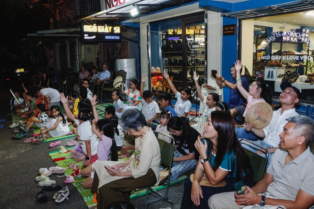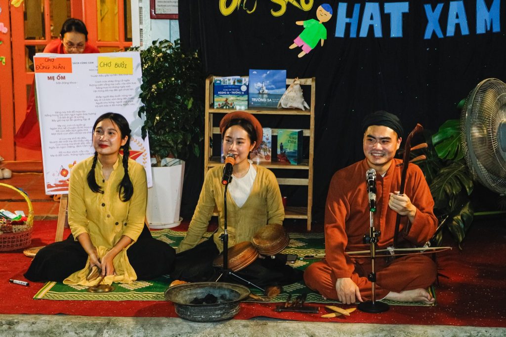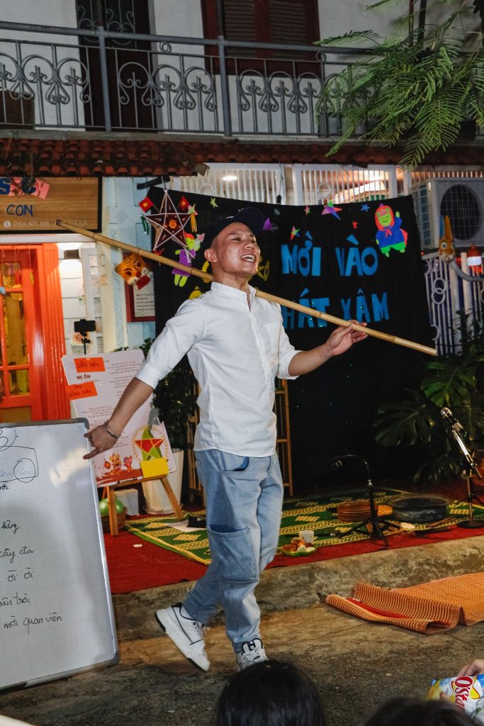 Đặc biệt, sự xuất hiện của các cô chú nghệ sĩ đến từ Trung tâm Xúc tiến Quảng bá Di sản Văn hóa Phi vật thể (VICH) đã mang lại một không gian nghệ thuật truyền thống sống động. Những làn điệu Xẩm và câu hát chèo mộc mạc được thể hiện chân tình, khiến các em nhỏ say mê. Lần đầu tiên, các bạn được ngồi chiếu xẩm, cùng gõ nhịp phách, hát vang những câu Xẩm Trung thu rộn ràng. Các nghệ sĩ còn khéo léo giới thiệu về nghệ thuật hề chèo – nhân vật quen thuộc, dí dỏm trong sân khấu dân gian Việt Nam, giúp các em thêm hiểu và yêu nghệ thuật truyền thống.
