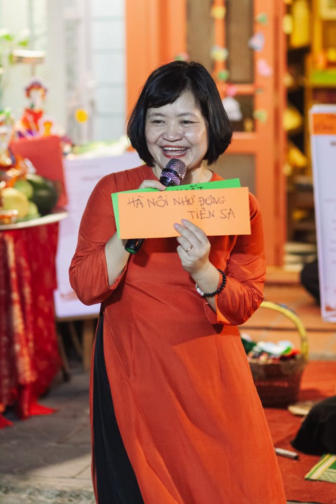 Các em nhỏ không chỉ được chơi những trò chơi dân gian thú vị, tự làm mặt nạ, làm ngôi sao, đèn lồng, mà còn cùng nhau làm thơ lục bát, thể thơ truyền thống của người Việt Nam.