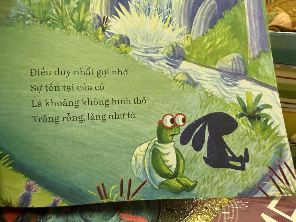 Với “Khoảng trống hình thỏ” và hành trình chú rùa Bertle đi tìm lại bạn mình, nhà thơ John Dougherty thử trò chuyện với các bạn nhỏ về nỗi buồn, sự trống vắng, cảm giác mất mát, thiếu thốn khi người mình yêu quý đã rời đi.