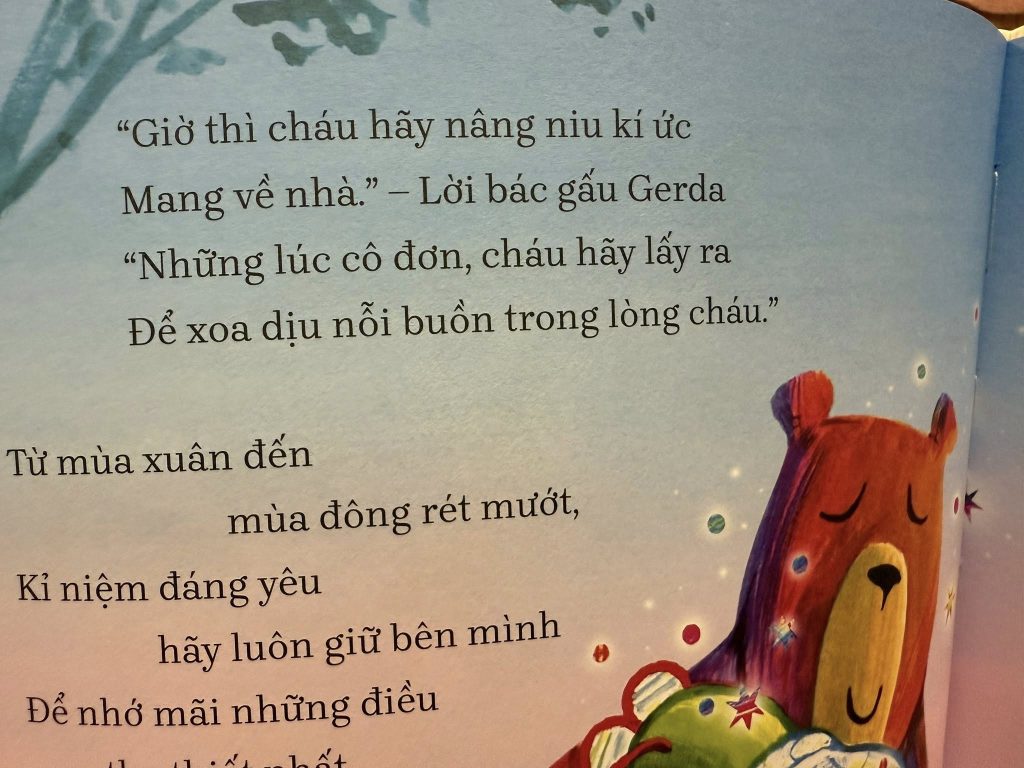 Đọc xong những dòng thơ cuối, bạn hãy thử thực hiện theo cách bác gấu Gerda hướng dẫn để lòng mình được nhẹ nhàng, bạn nhé!